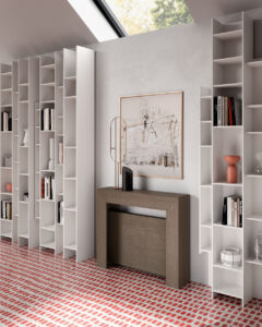 This is the smallest console in the world and measures just 20 cm deep! Mini is a discreet piece of furniture, concealing table extensions inside that allow it to stretch up to 162 cm, accommodating up to 6/8 guests. An incredible marvel of furniture engineering.