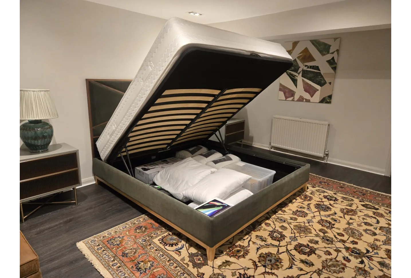 Standing on elegant walnut feet, this Illusion storage bed features a solid wood storage tray within the bed which gives you an amazing 33cm of storage depth - that’s over 1000 cubic litres!