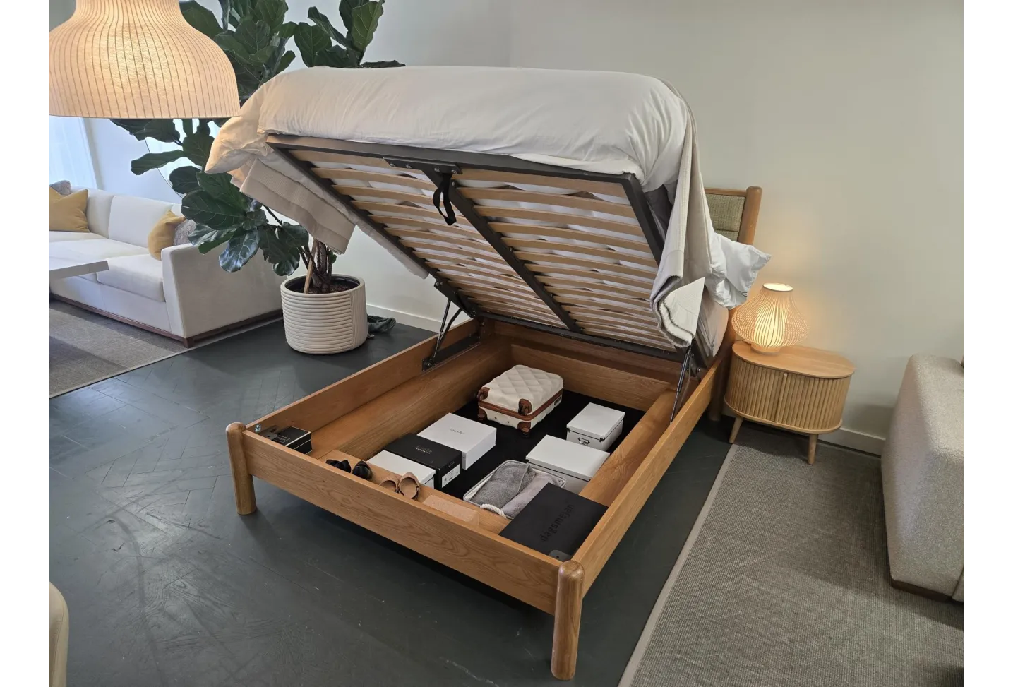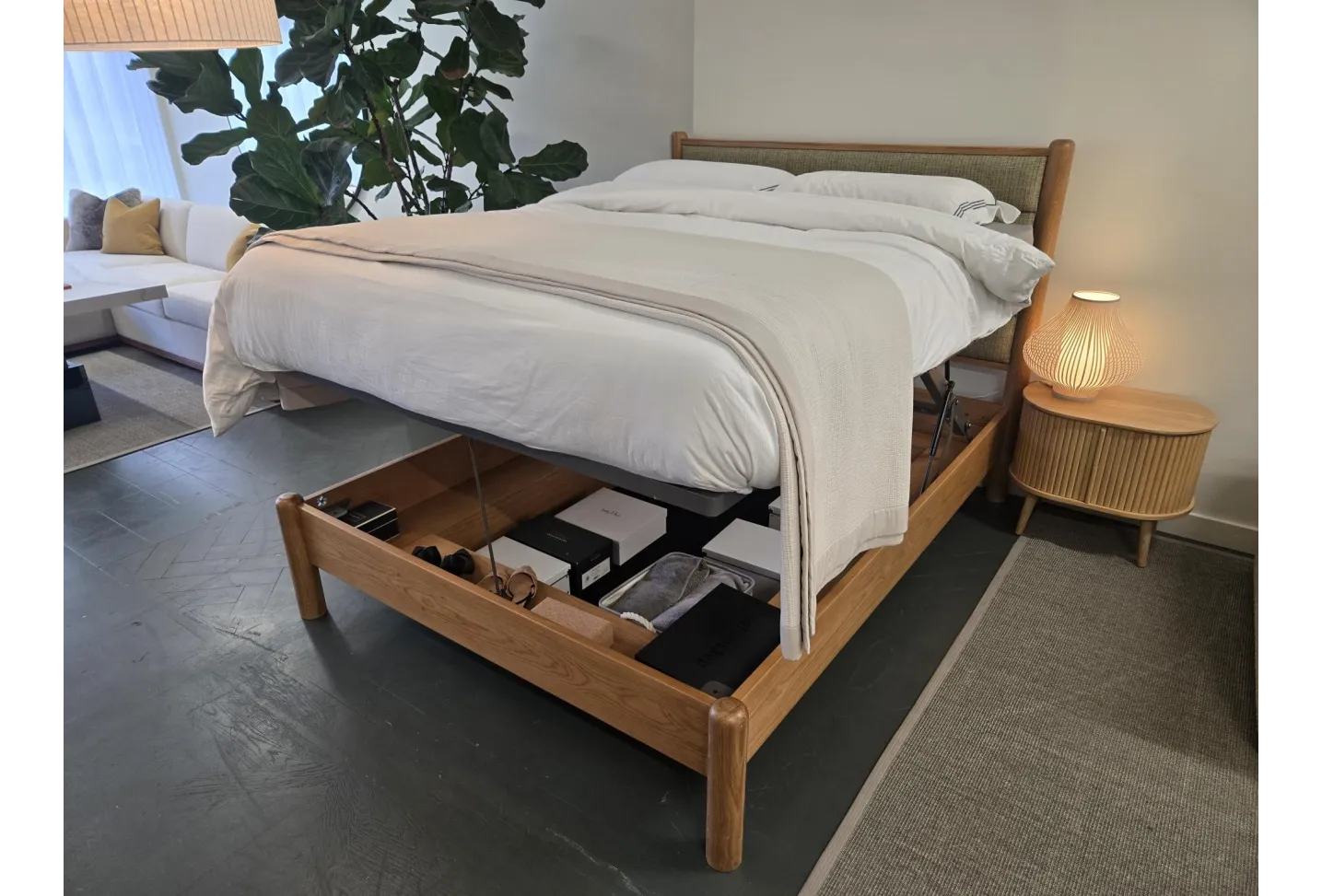 Willow pairs clean, solid oak craftsmanship with a thoughtfully engineered lift-up base — available with either a smooth manual lift with ( with Horizonal, Bed Making Mode) or an electric-assisted mechanism for effortless, one-touch access. With 33cm of deep, usable storage, it’s ideal for keeping bedding, clothing, or everyday clutter neatly out of sight.