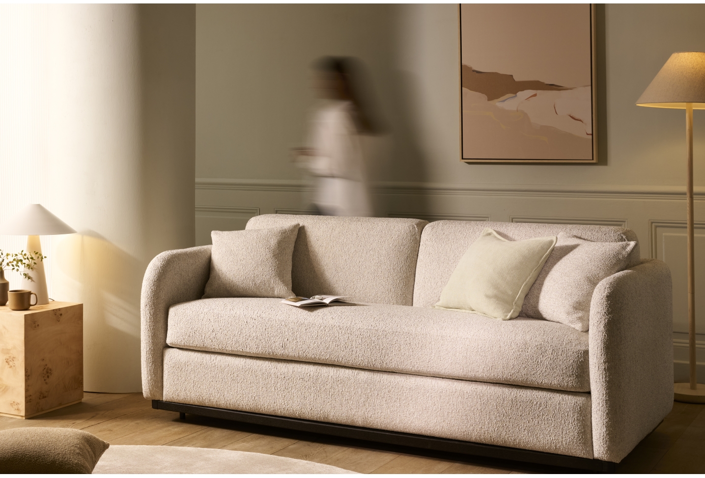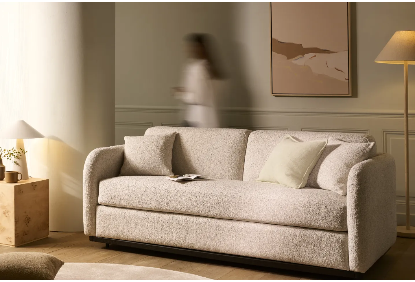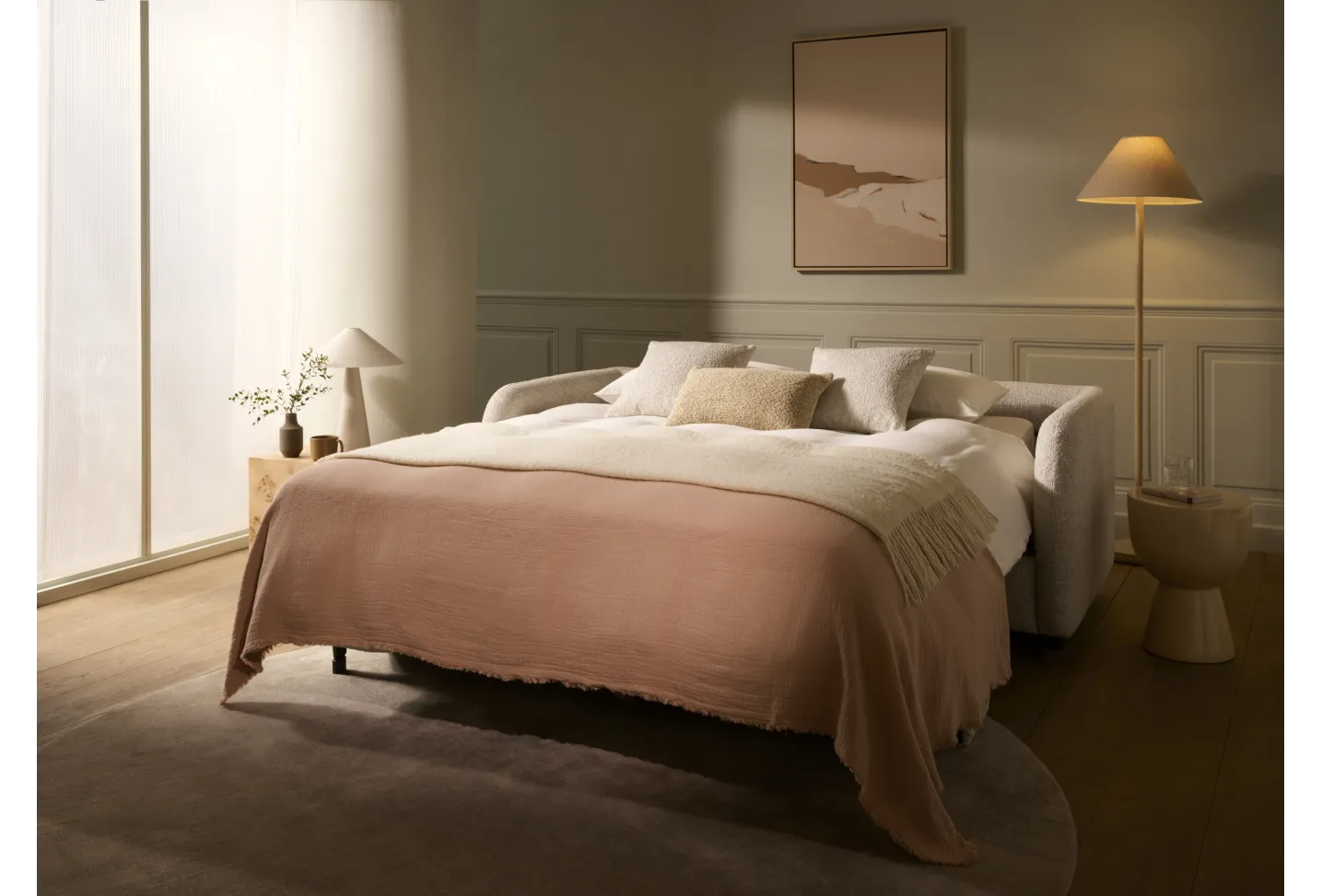 The Cocoon Sofa Bed looks and feels like a sofa you genuinely want to live with, then opens into a proper bed with a deeply comfortable 18 cm mattress. Calm, curved, and beautifully resolved, it removes the usual compromises of sofa beds — so your space stays elegant by day, and sleep stays uncompromised by night