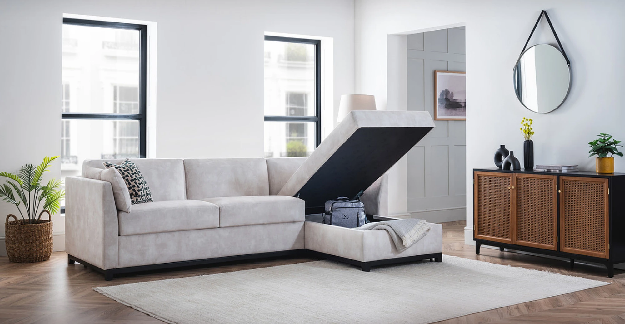 A chaise with loads of storage, 820mm x 1750mm. You choose the side that best fits your space.