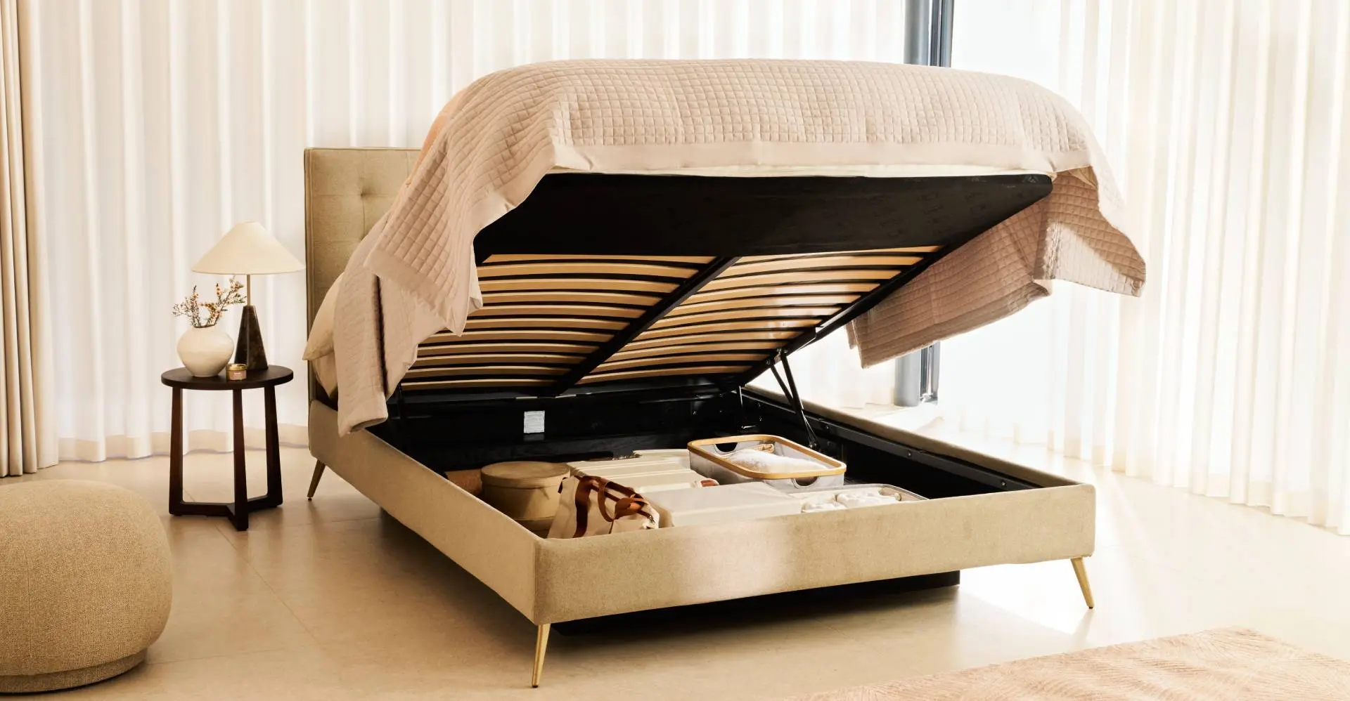 Luxurious style, elegance and handy storage space for your belongings, our Hotel storage beds have it all.